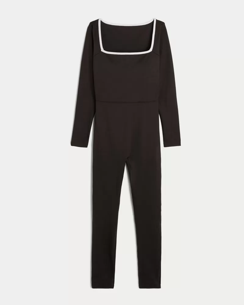 Designed in our breathable, 4-way stretch, moisture-wicking Recharge fabric with a super soft, brushed feel. This comfy onesie features a square neckline with contrast trim, long sleeves and a long-leg silhouette. Imported.