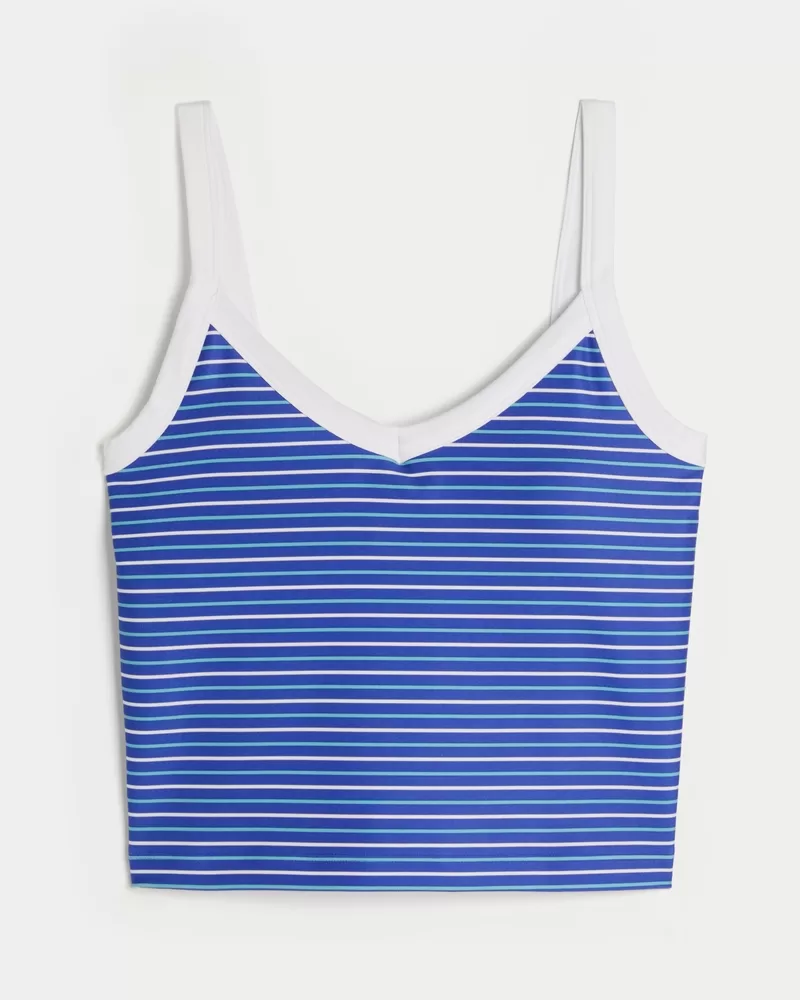 Designed in our breathable, 4-way stretch, moisture-wicking Recharge fabric with a super soft, brushed feel. This comfy tank features a v-neckline, built-in shelf bra and removable pads. Tipped trims. Imported.