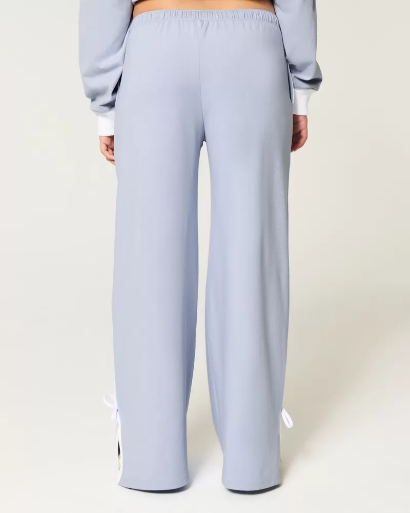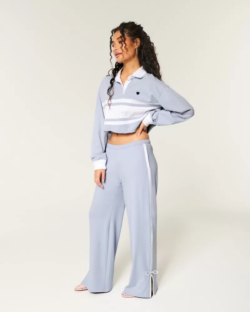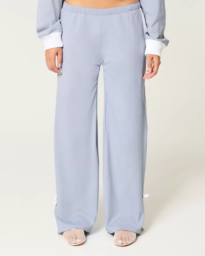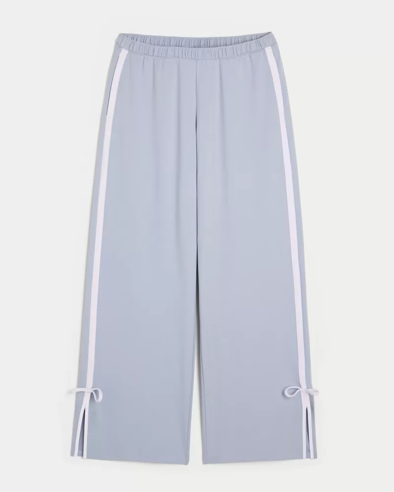 Designed in our breathable, 4-way stretch, moisture-wicking Recharge fabric with a super soft, brushed feel. These cute track pants feature tipped sides and tie details at the hems. Split side hem details, banded waist. Imported.