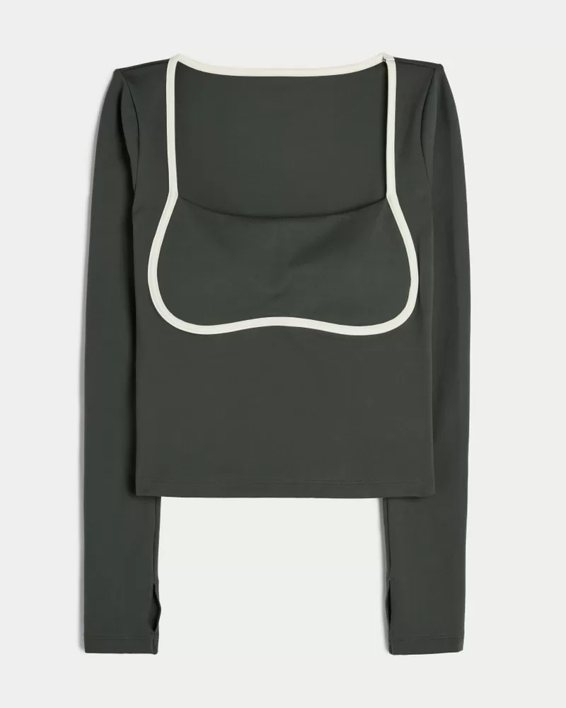 Designed in our breathable, 4-way stretch, moisture-wicking Recharge fabric with a super soft, brushed feel. Long sleeves, square neckline, tipped under-bust detail, thumb openings. Imported.