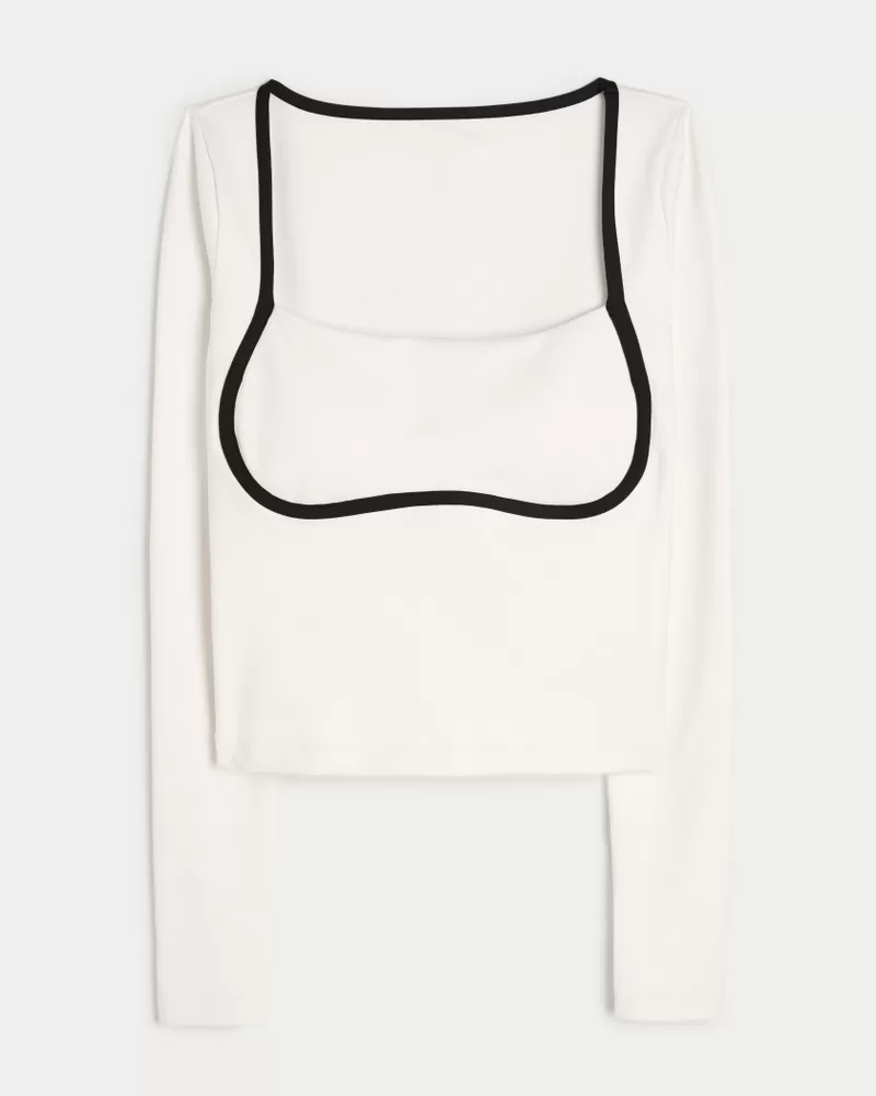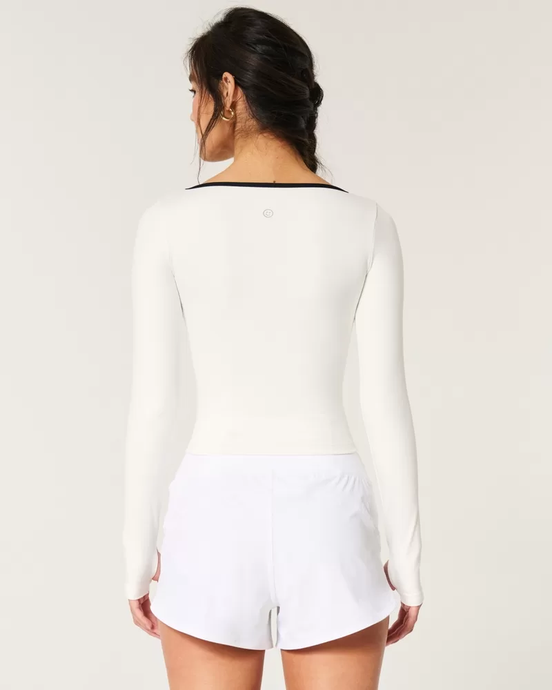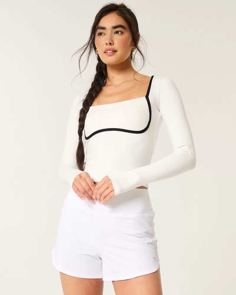 Designed in our breathable, 4-way stretch, moisture-wicking Recharge fabric with a super soft, brushed feel. Long sleeves, square neckline, tipped under-bust detail, thumb openings. Imported.