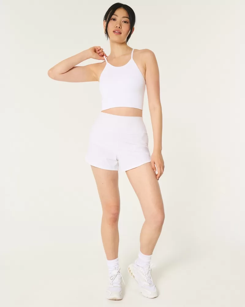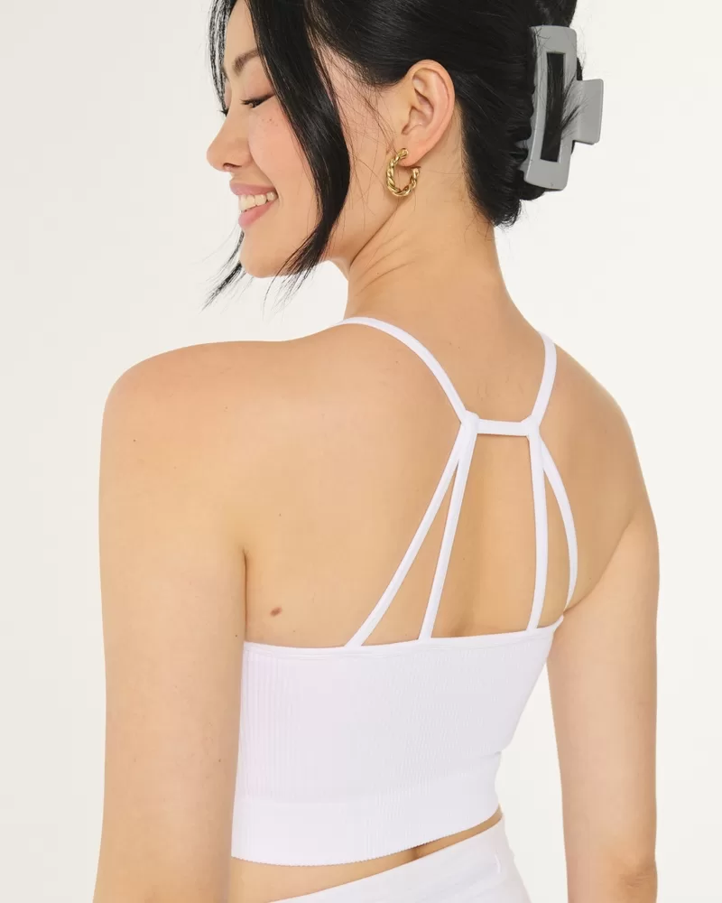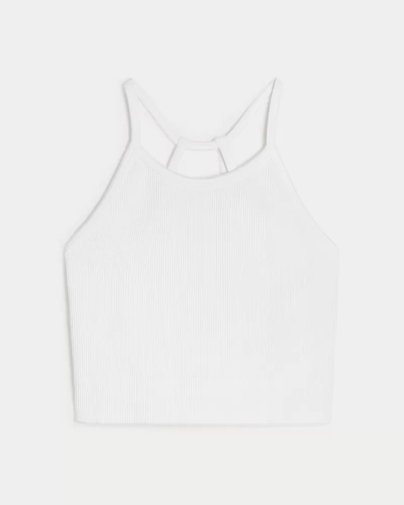 An ultra-comfy tank made with super soft ribbed fabric with a seamless look and feel. High-neckline, strappy back.