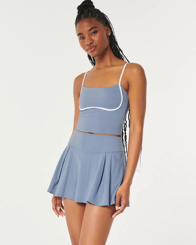 This super comfy skortie is designed with a cute box-pleated silhouette. Soft banded waist, inner shorts.