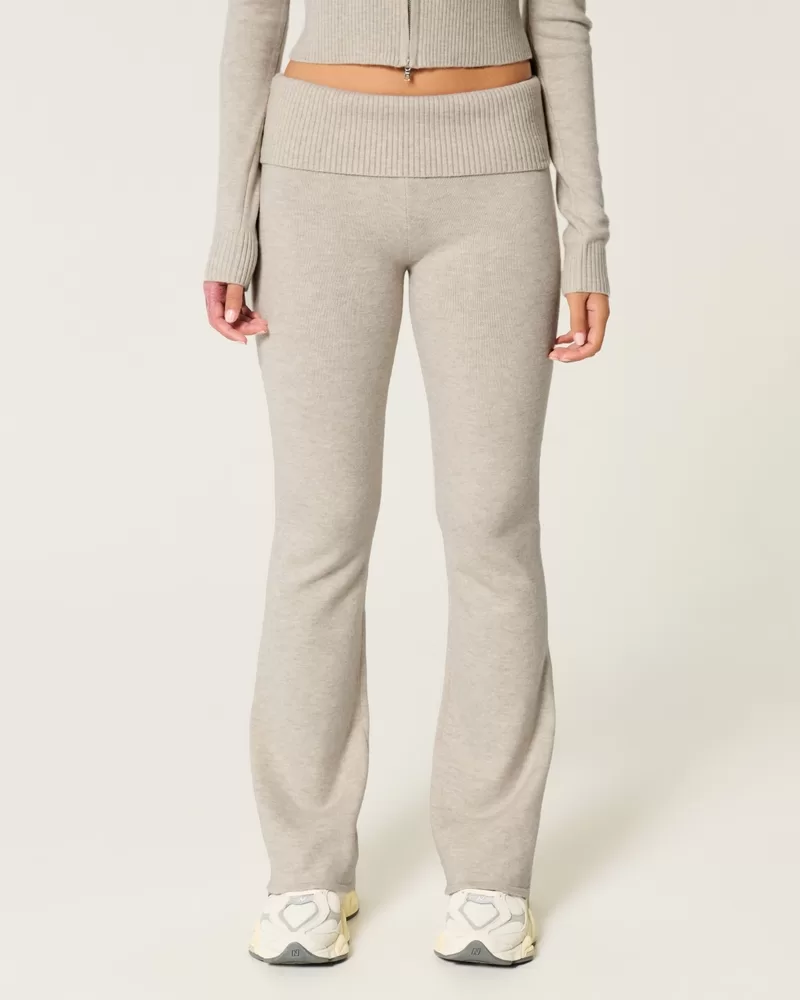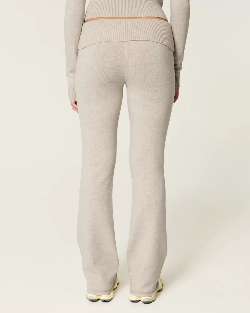 Cozy pants in super soft sweater-knit fabric, designed with a slim leg and boot hem. Ribbed foldover waist.