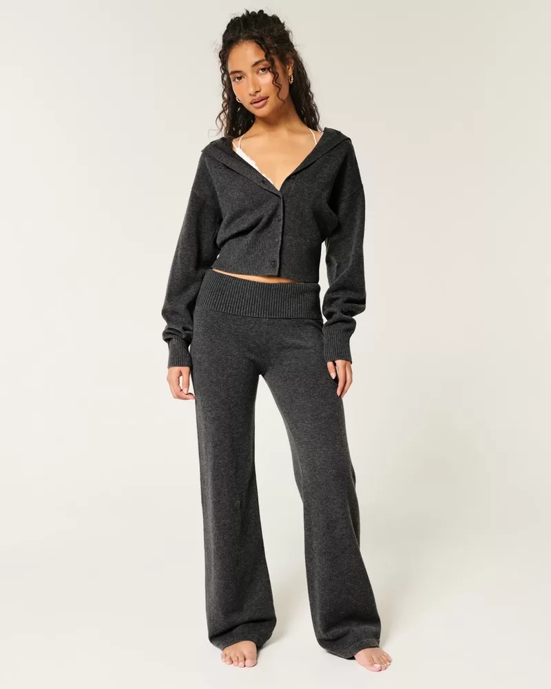 Cozy and super soft sweater-knit pants designed with a straight leg ribbed foldover waist.