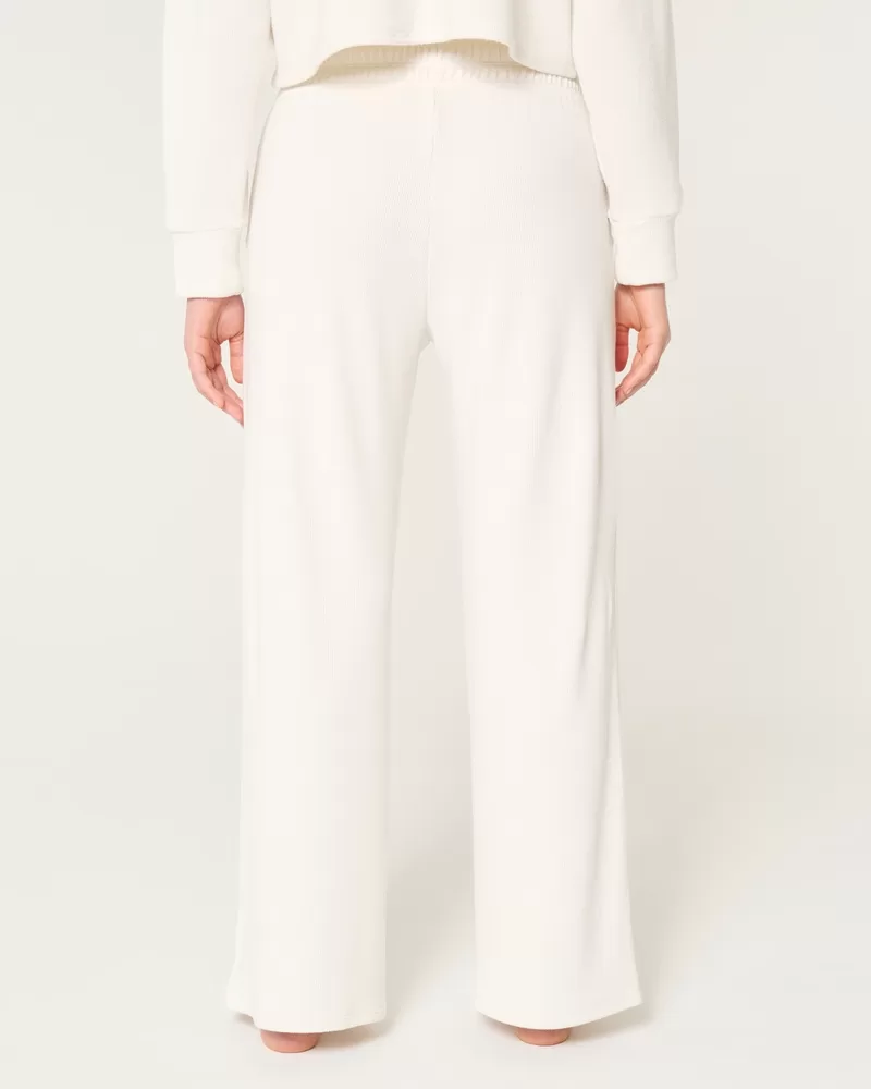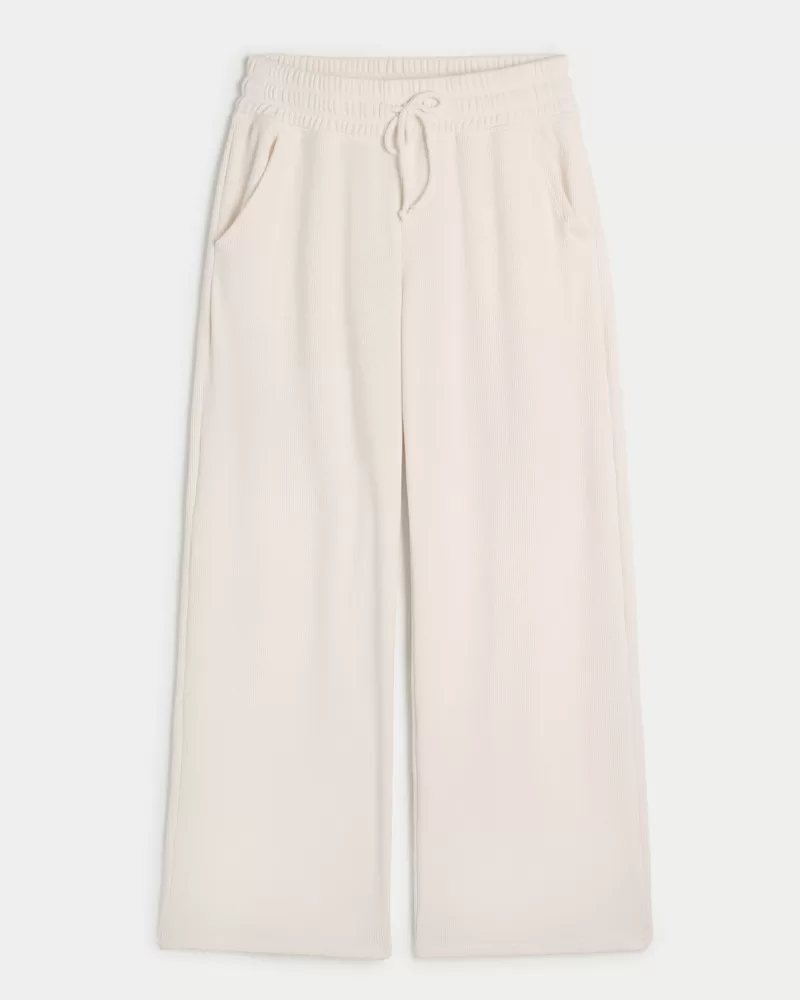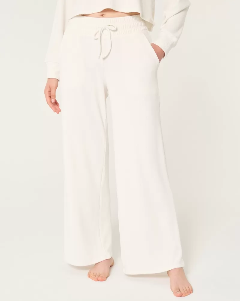 Cozy and super soft pants in waffle fabric, designed with a wide-leg silhouette. Soft drawstring waist, pockets. Imported.