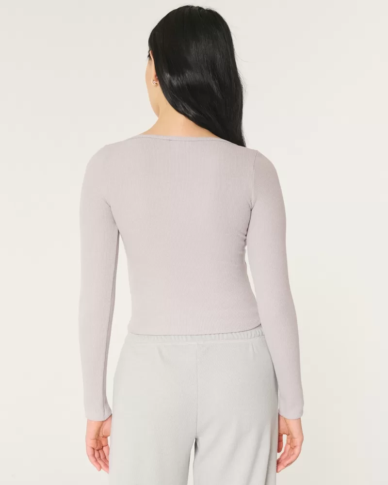 This cute and comfy top is made with super soft waffle fabric and features a wide-neck silhouette. Long sleeves.