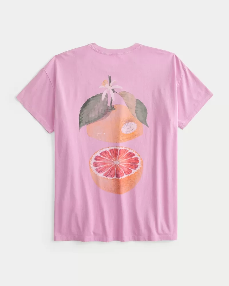 A super soft 100% cotton tee featuring grapefruit print graphics at the left chest and back. Crew neckline, short sleeves.