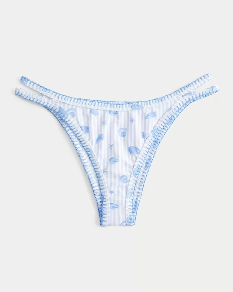 High-Leg Embroidered Stitch Strappy Cheekiest Bikini Bottom