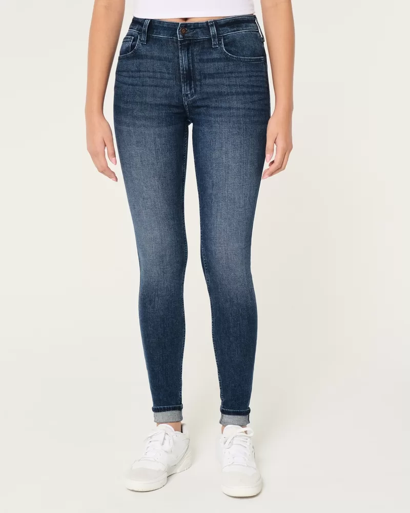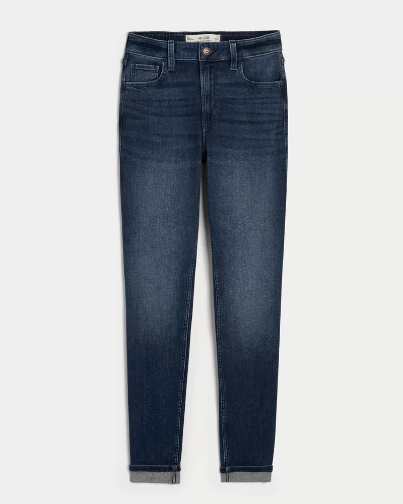 Designed in our signature slim fit, these medium wash super skinny jeans feature fading and whiskering. High-rise waist, cuffed hems, stretch.