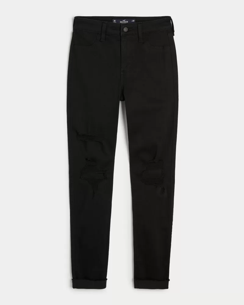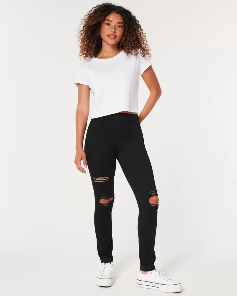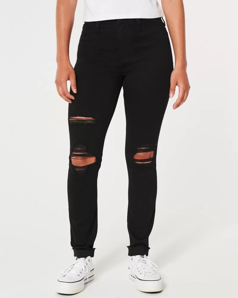 Our jean leggings fit like leggings and look like jeans. Designed in comfortable Advanced Stretch denim, these ripped black jean leggings feature a high-rise waist.