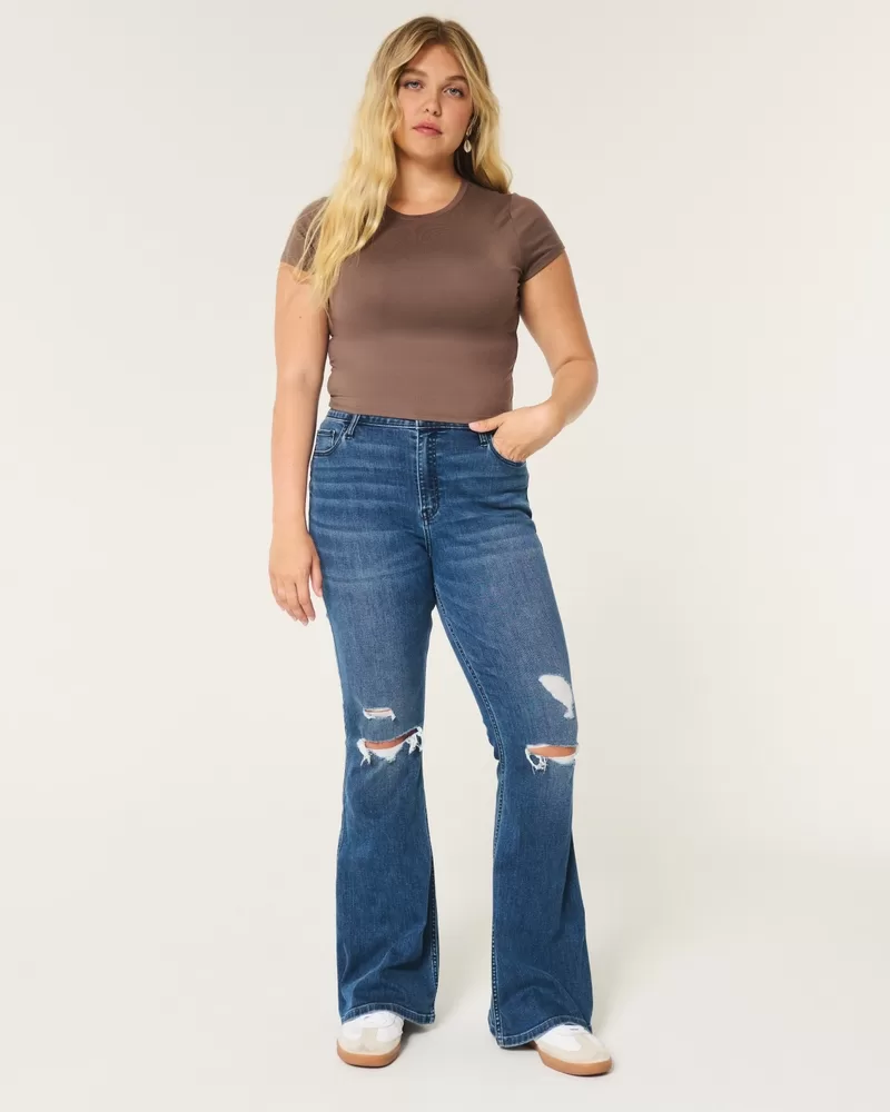 High-Rise Ripped Medium Wash Flare Jeans
