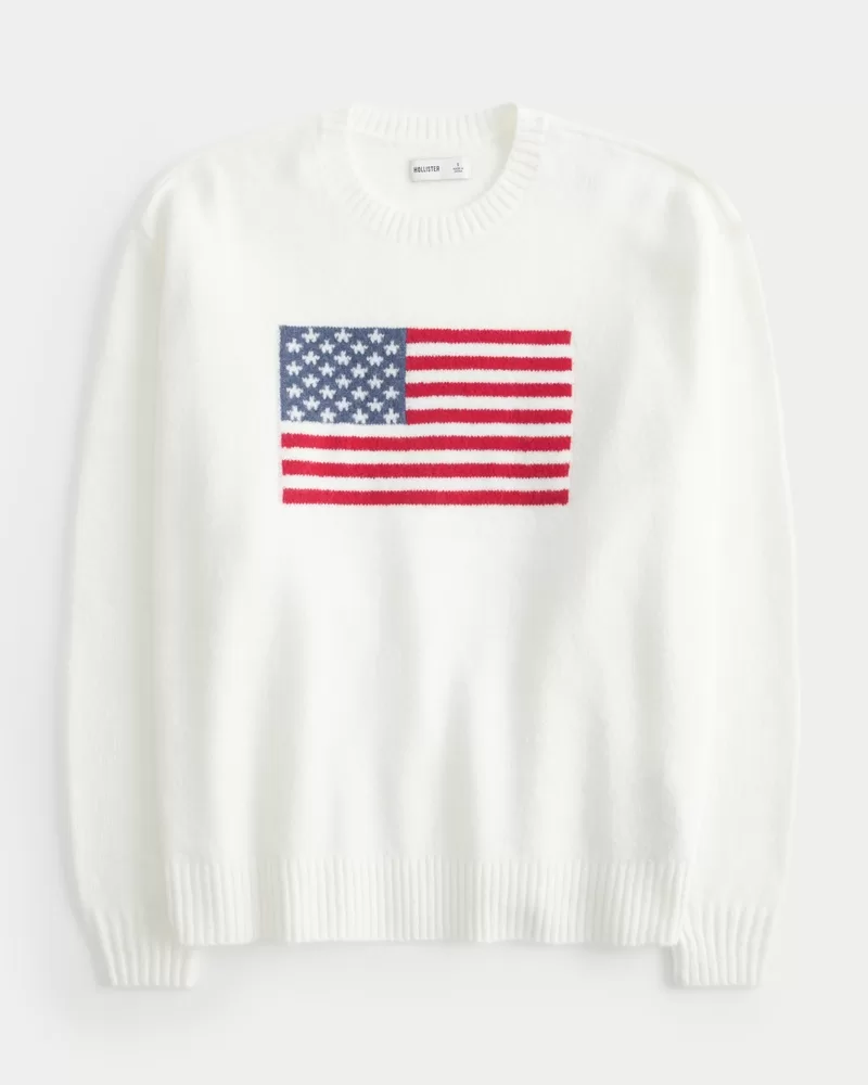 Hollister Comfy Cloud American Flag Graphic Crew Sweater