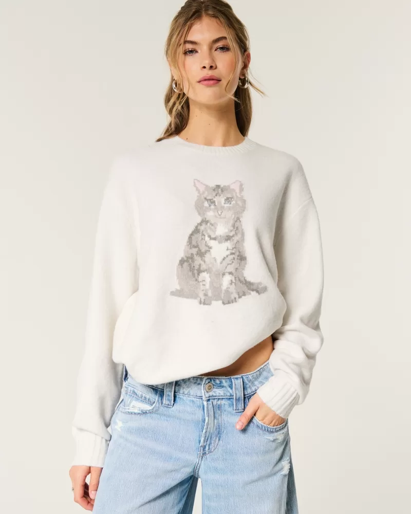 Hollister Comfy Cloud Kitten Graphic Sweater