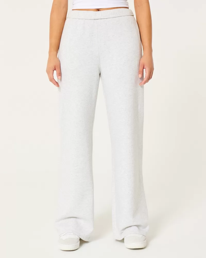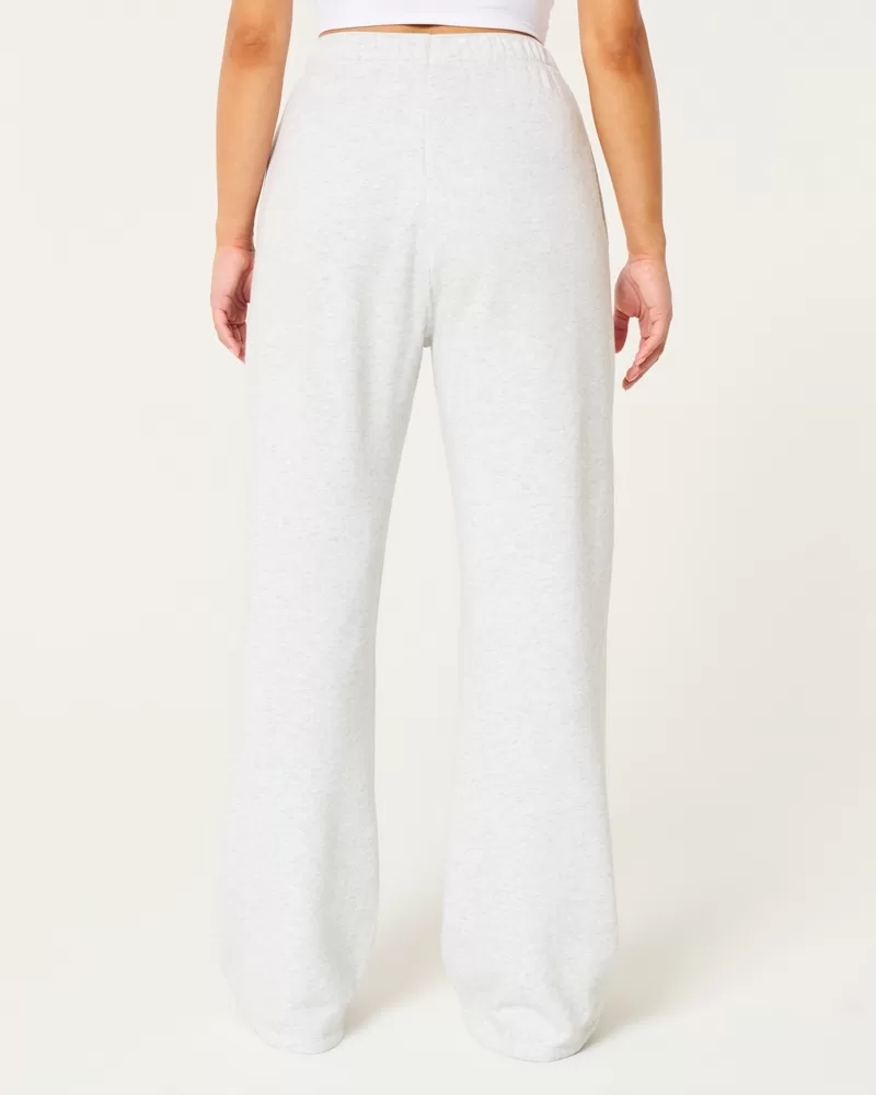 Made with super soft fleece fabric, these cozy wide-leg pants feature a banded waist, pockets and an embroidered logo icon near the waist.