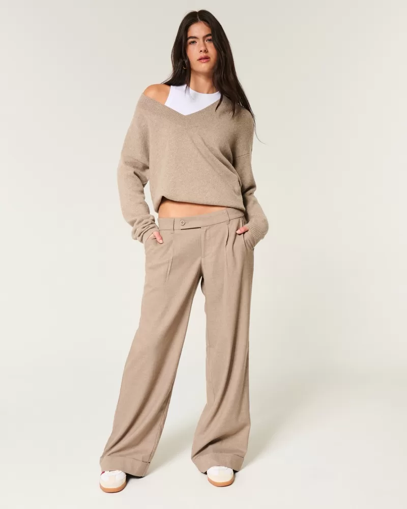 Your new fave pants are designed with a flattering low-rise waist and wide-leg silhouette. Cuffed hems, classic pleats at the waist for a tailored look.