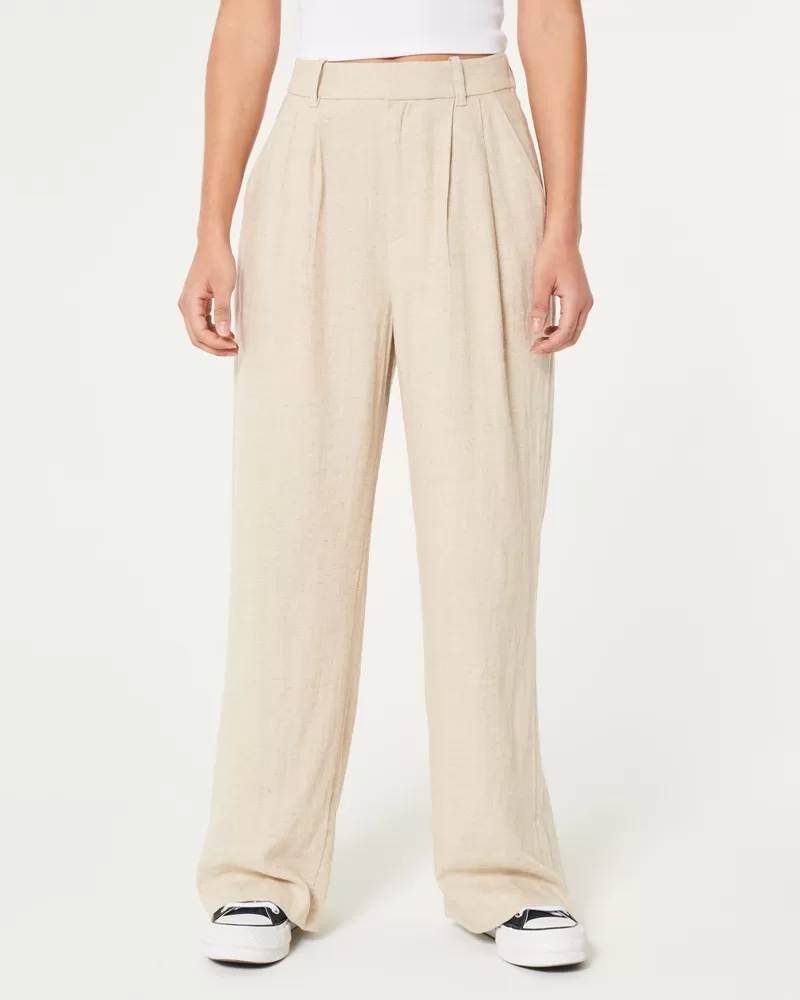 Hollister Livvy Ultra High-Rise Linen-Blend Wide-Leg Pants