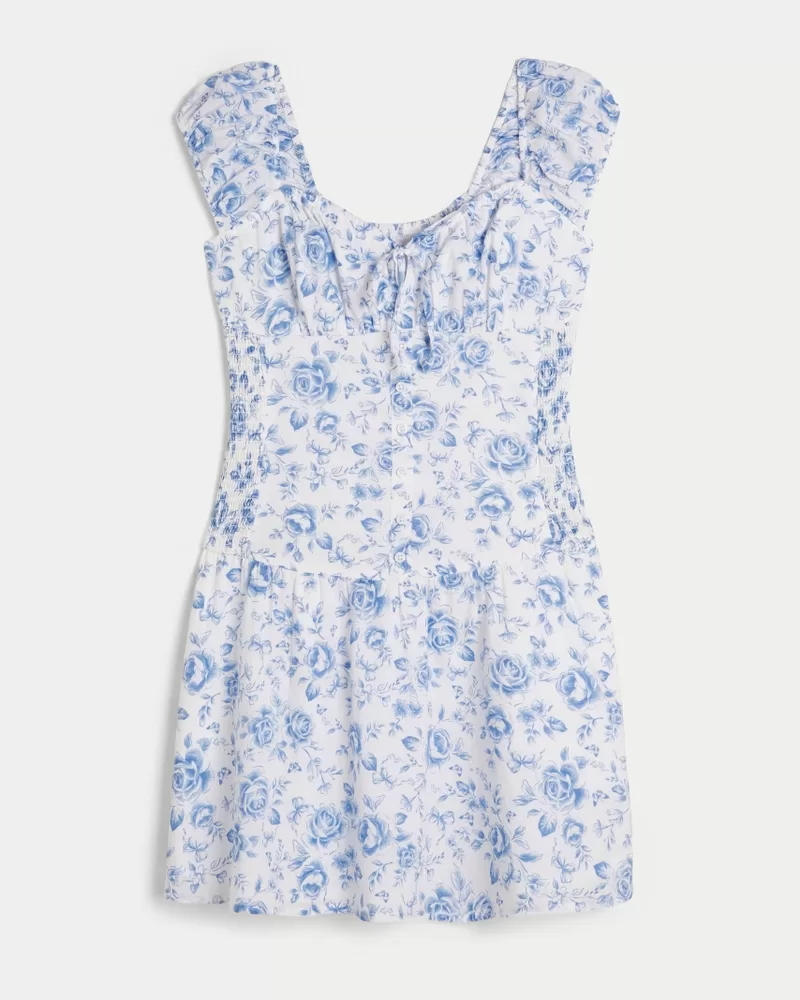 This super cute and ultra-soft maxi-length dress features flattering side smocking, ruched detailing at the bust and button details. Cute tie detail, drop waist. Imported.