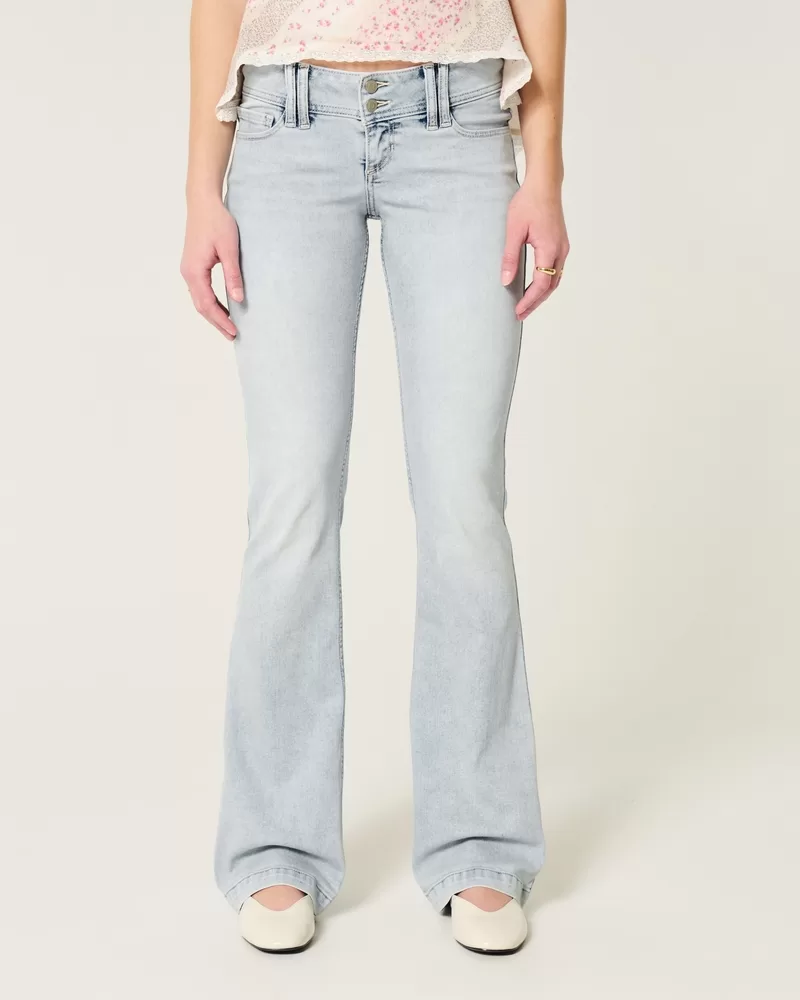 Comfortable denim jeans in a light wash, designed with a slim leg and boot hem. Ultra low-rise waist, fading, whiskering. Imported.
