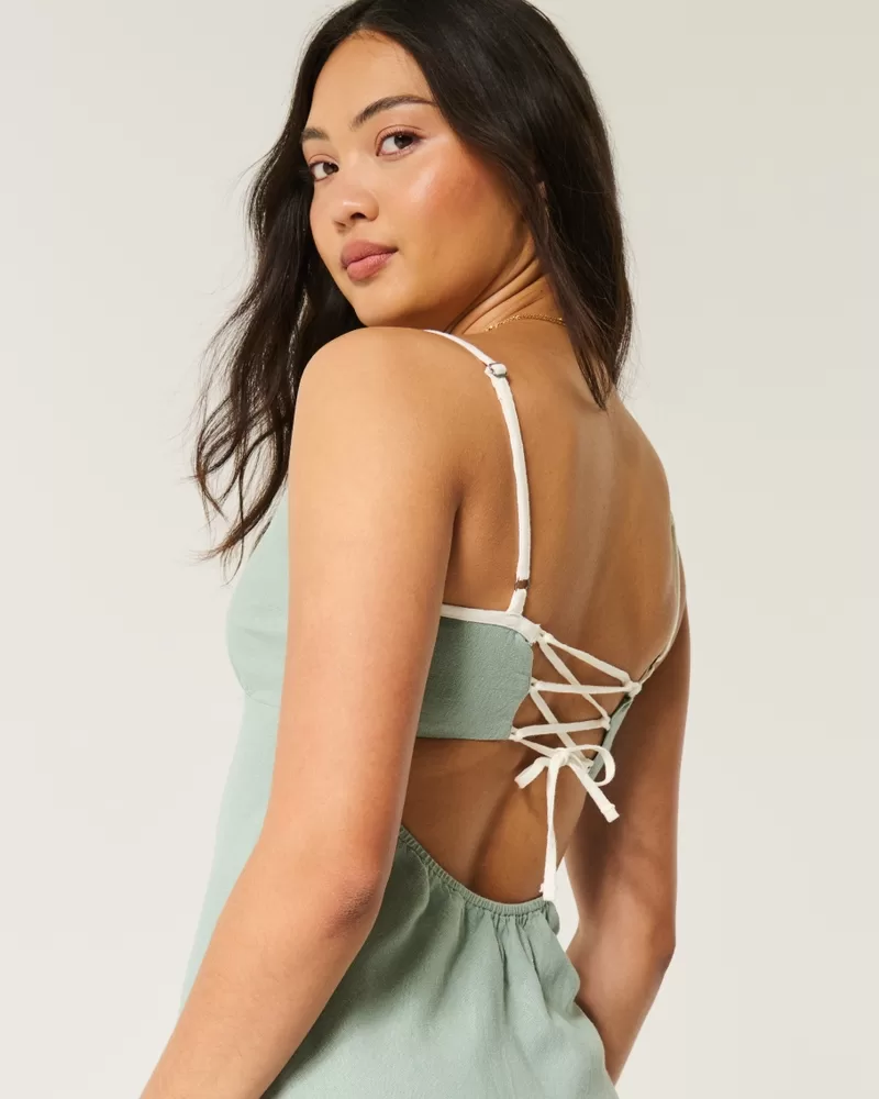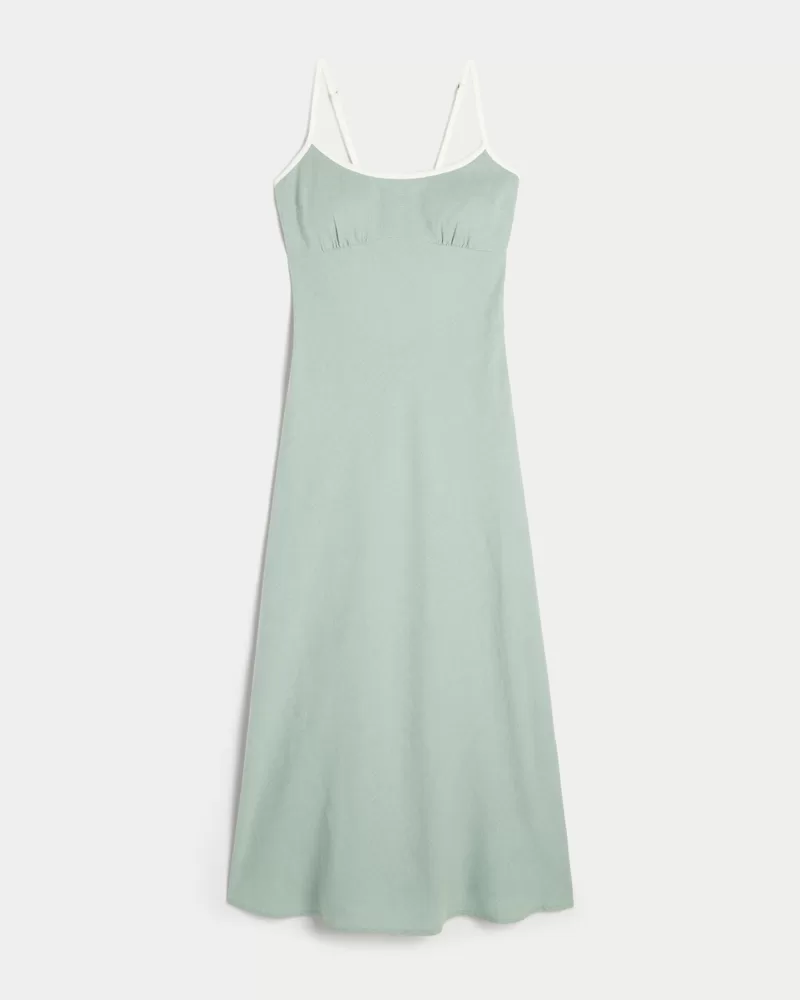 Linen-Blend Open-Back Slip Midi Dress