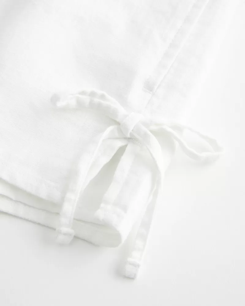 Linen-Blend Side Bow Soft Shorts