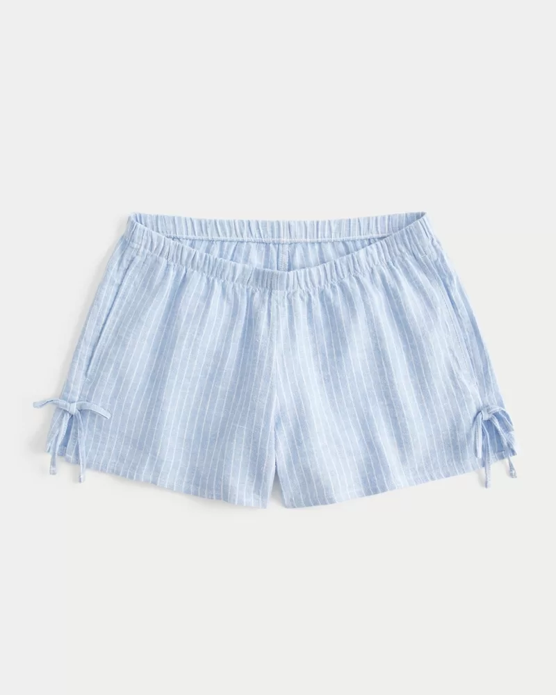 Linen-Blend Side Bow Soft Shorts