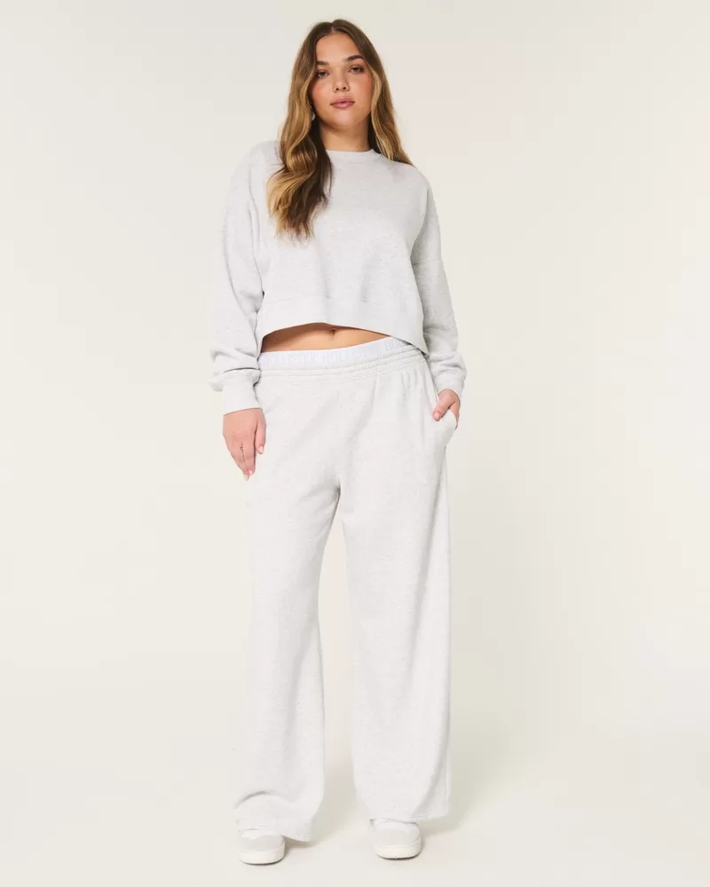 Super soft fleece pants with a wide-leg silhouette and logo-detailed waistband for a layered look. Pockets.