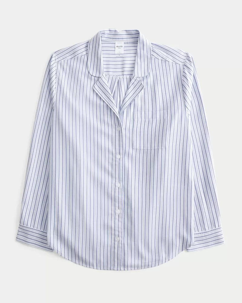 An ultra-comfortable flannel pajama top with a full button closure, long sleeves and left chest pocket. Curved hem, collar.