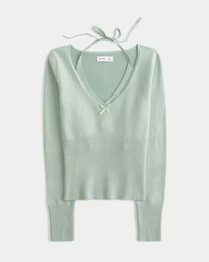 Long-Sleeve Halter Tie Sweater