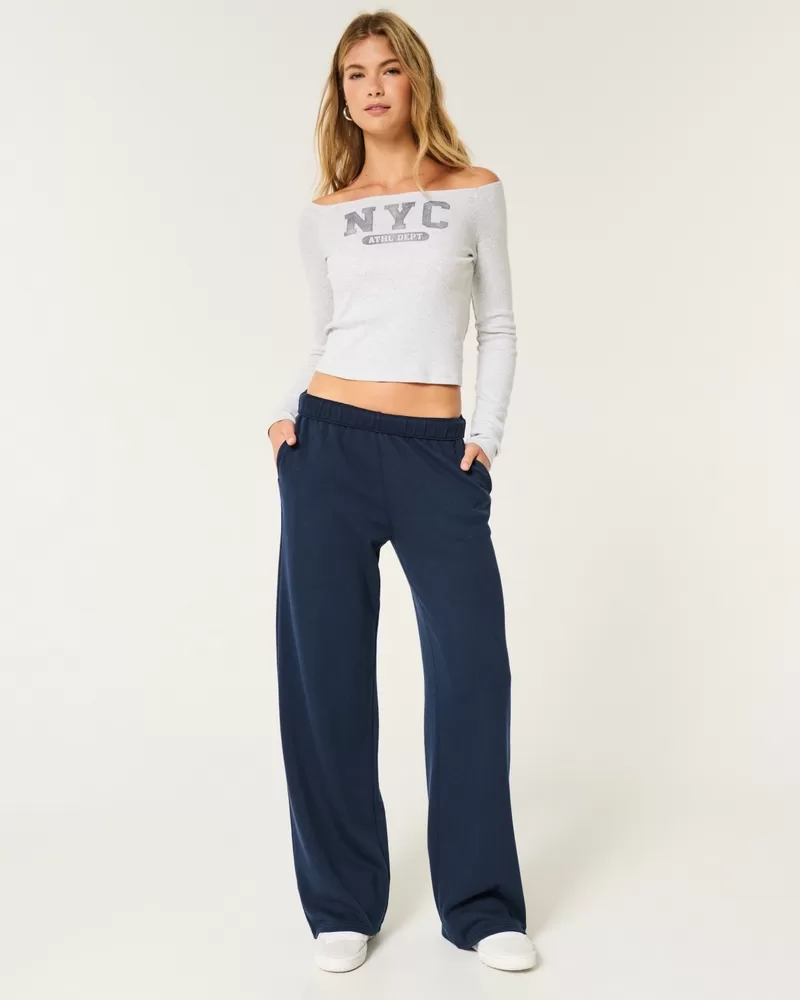A cute and comfy long-sleeve t-shirt in 100% cotton, featuring NYC Athl Dept print graphics and an off-the-shoulder neckline. Imported.