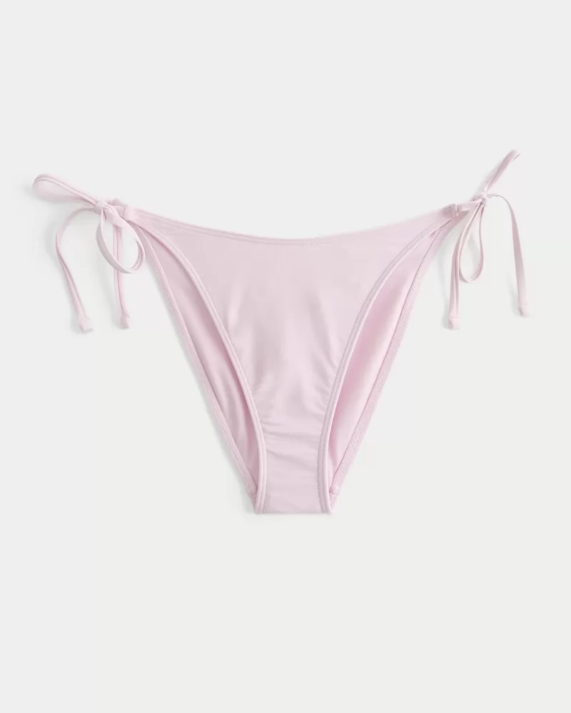 A cute and comfy bikini bottom in soft swim fabric with side ties and cheeky coverage. All-over heart pattern.