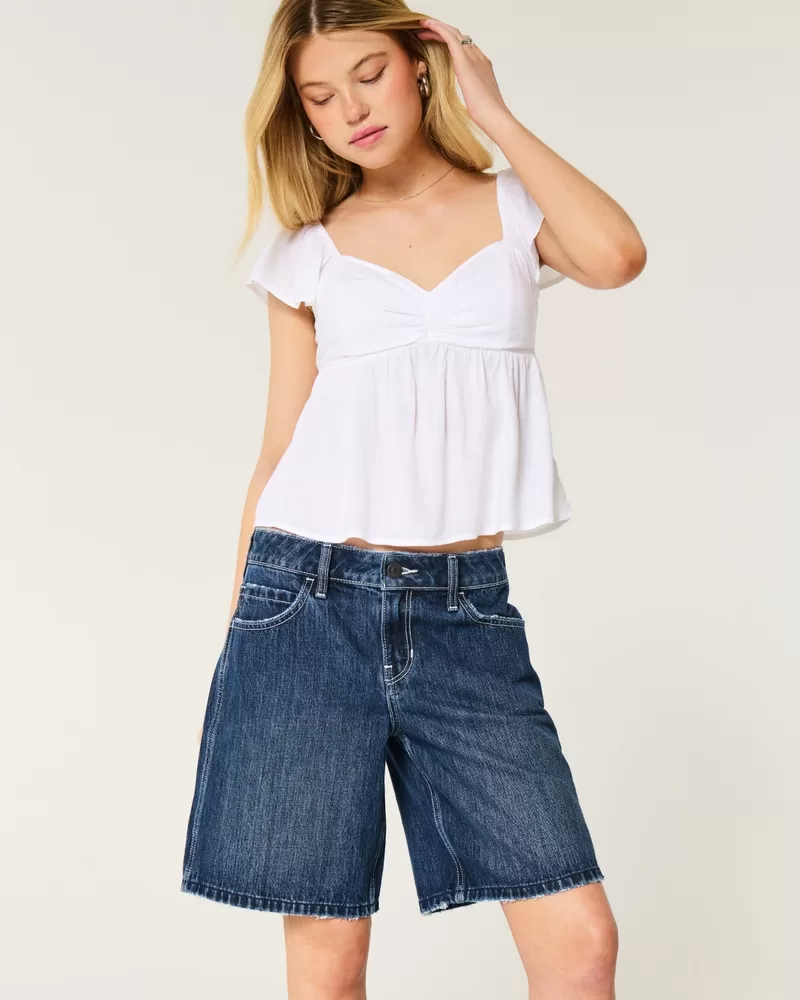 Low-Rise Dark Rinse Wash Baggy Jort