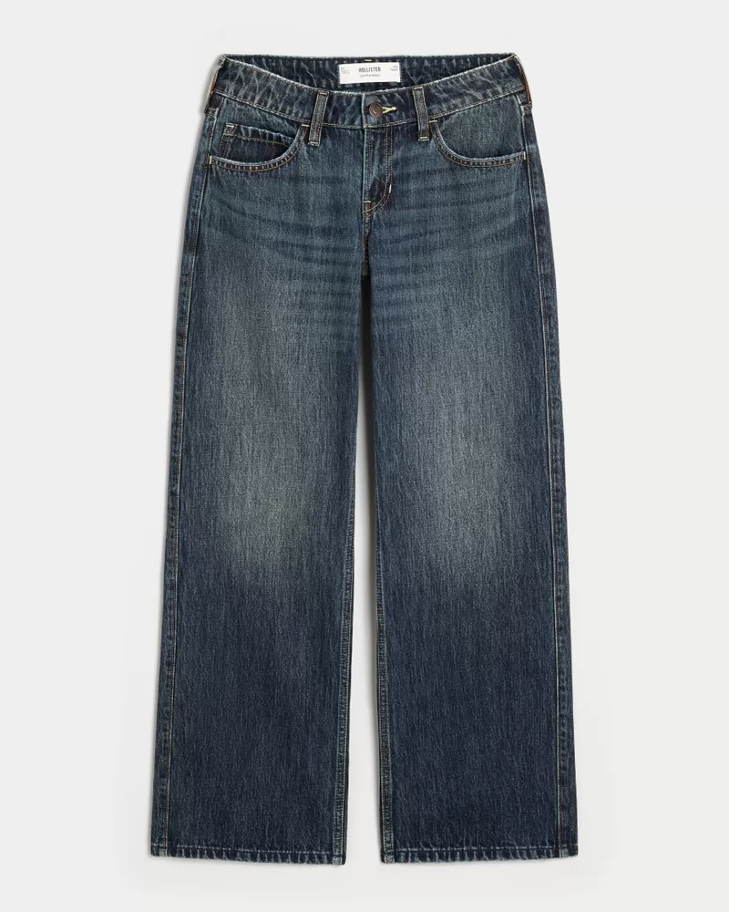 Low-Rise Dark Wash Baggy Jeans