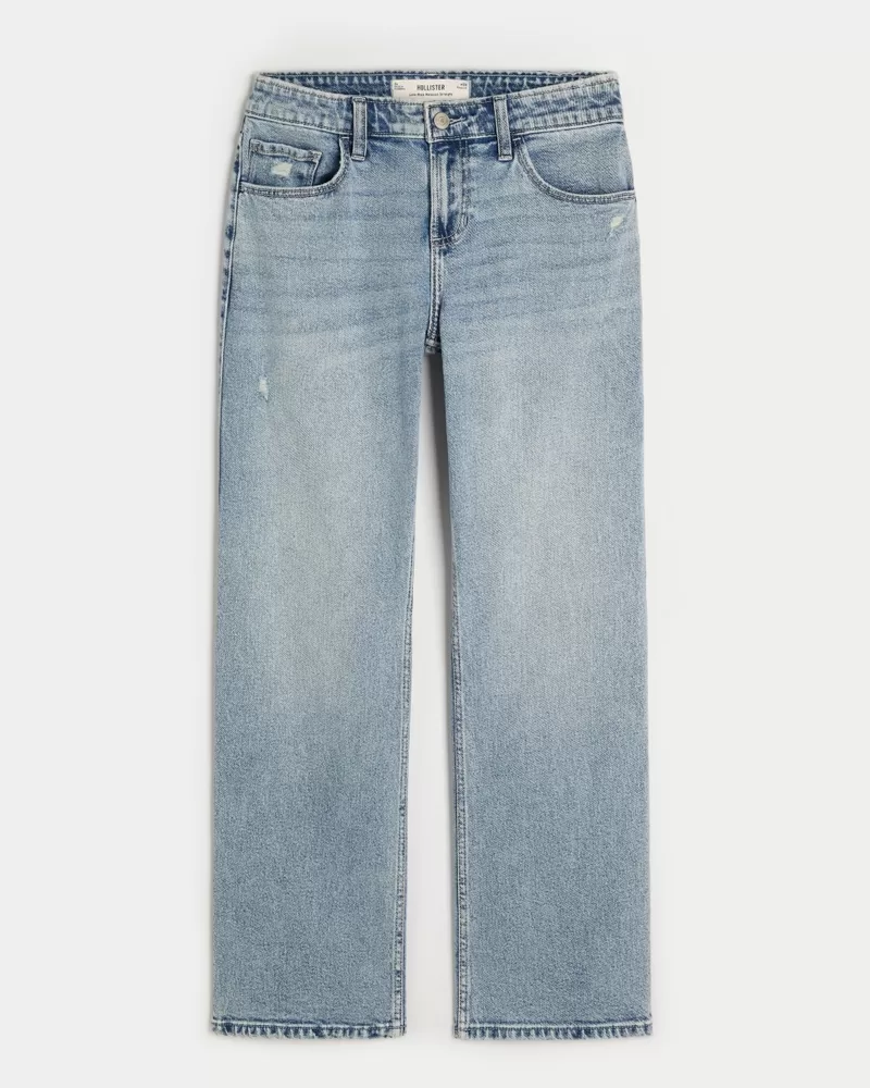 Low-Rise Distressed Medium Wash Relaxed Straight Jeans