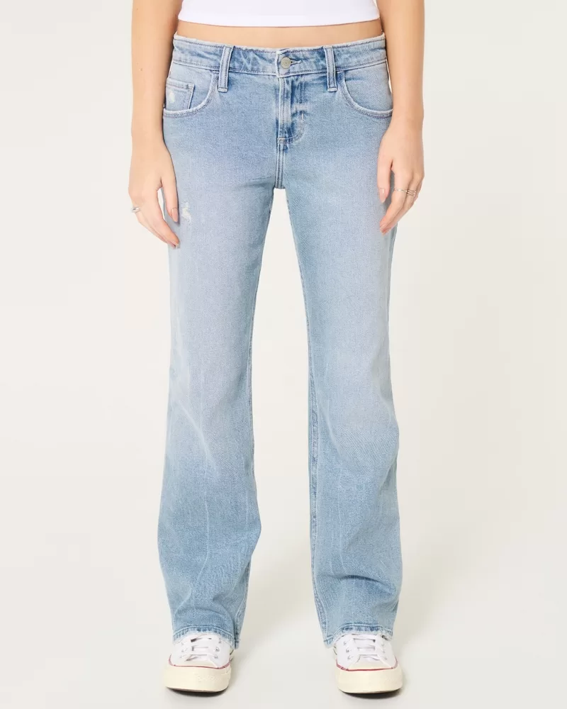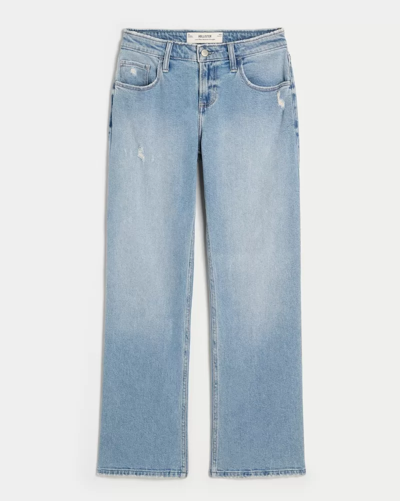 Low-Rise Distressed Medium Wash Relaxed Straight Jeans
