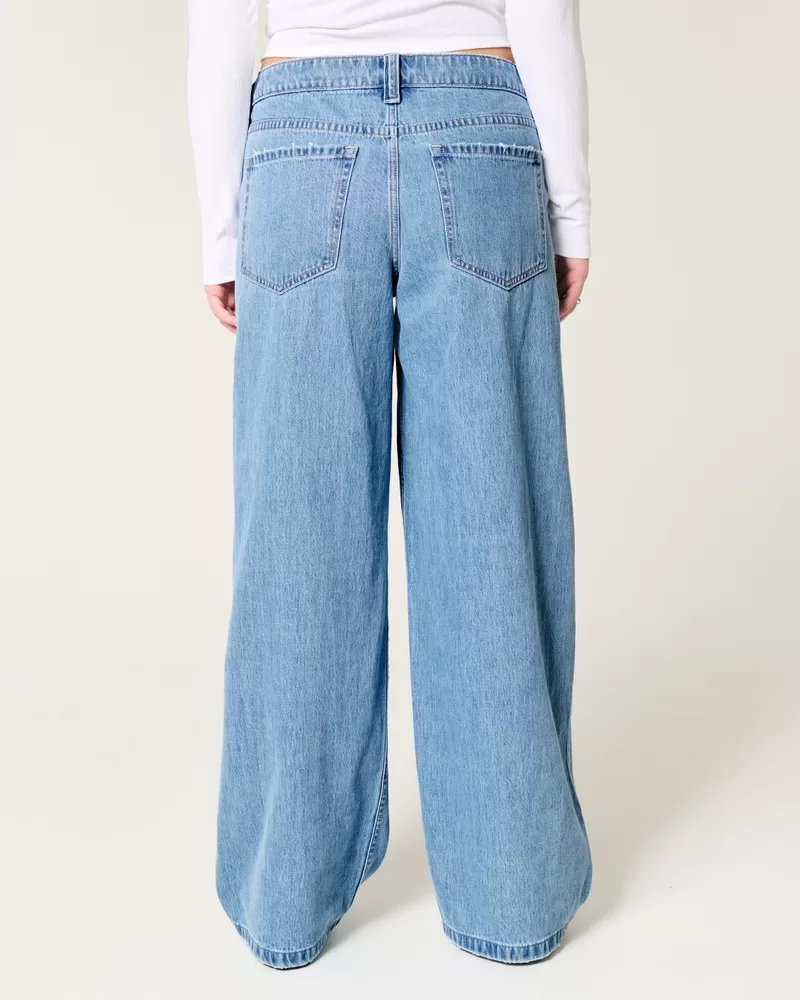 Low-Rise Floral Embroidered Medium Wash Super Baggy Jeans