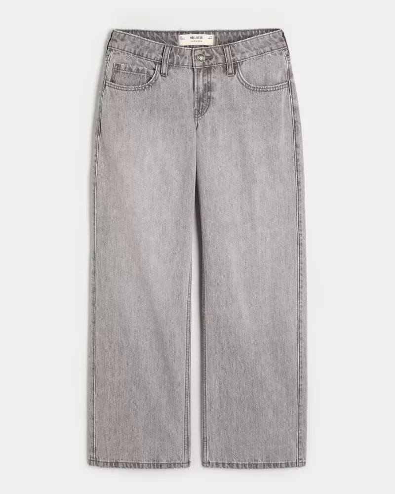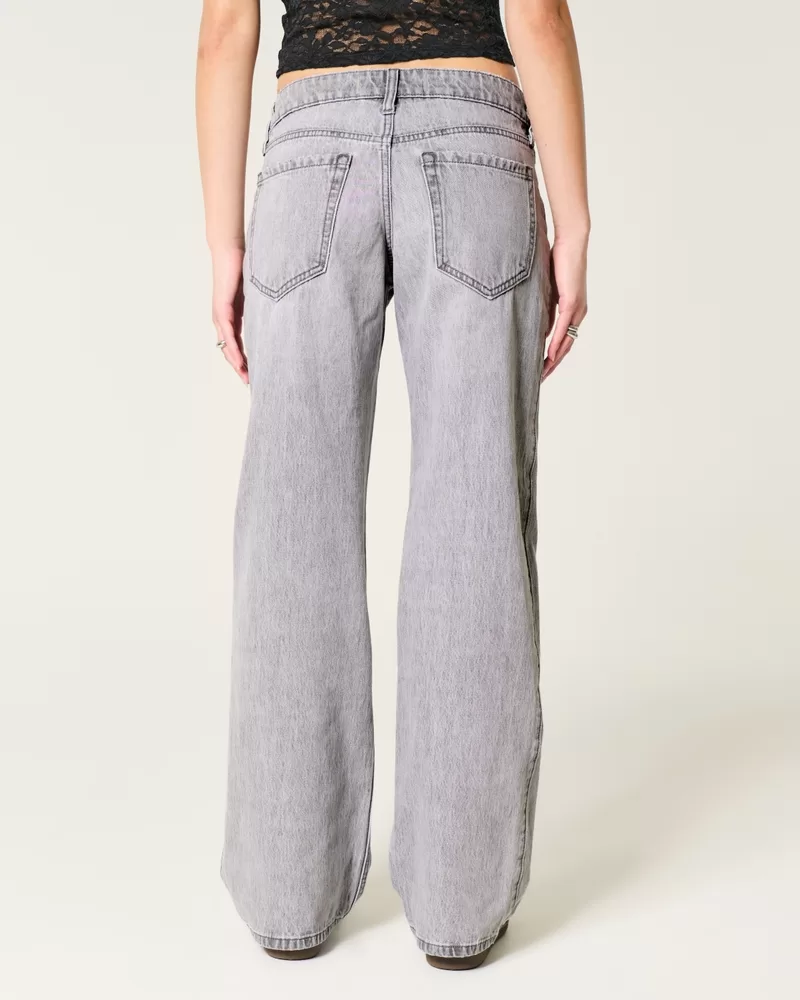 Cute and comfortable jeans in grey, designed with a flattering low-rise waist and baggy leg.