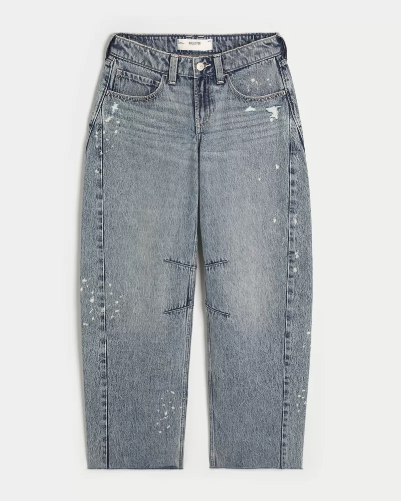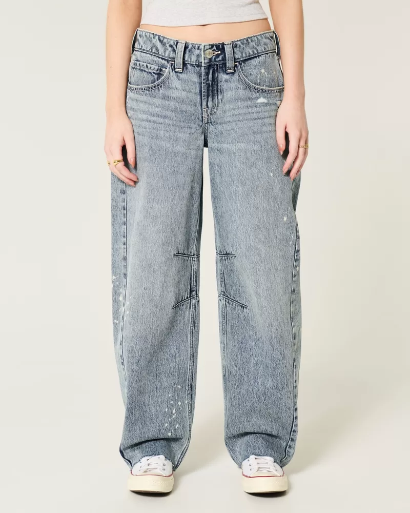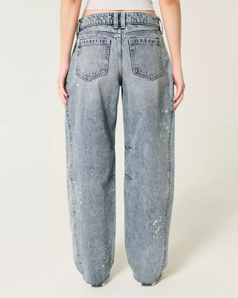 Low-Rise Light Wash Paint Splatter Barrel Jeans