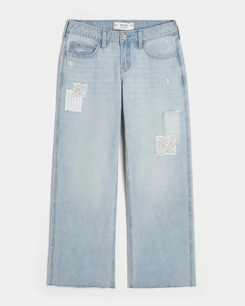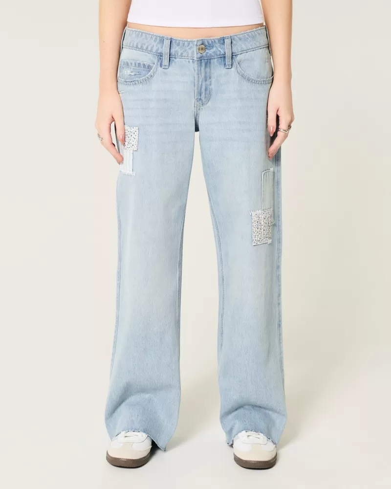 Low-Rise Light Wash Patchwork Baggy Jeans