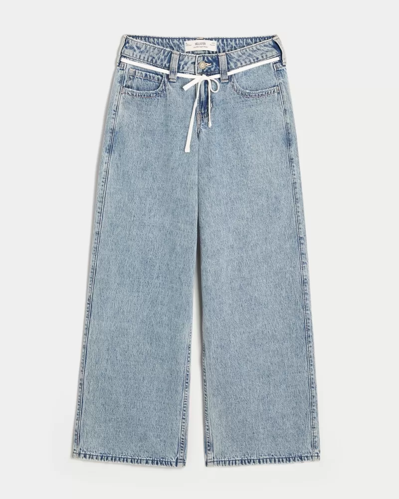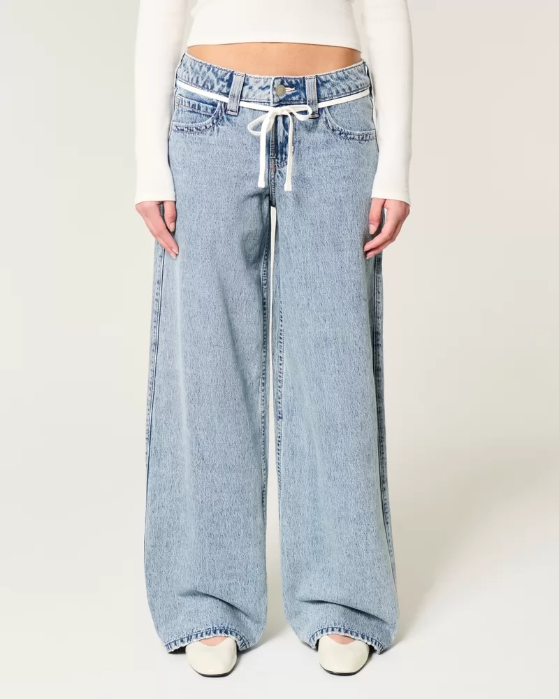 Low-Rise Light Wash Shoelace Super Baggy Jeans