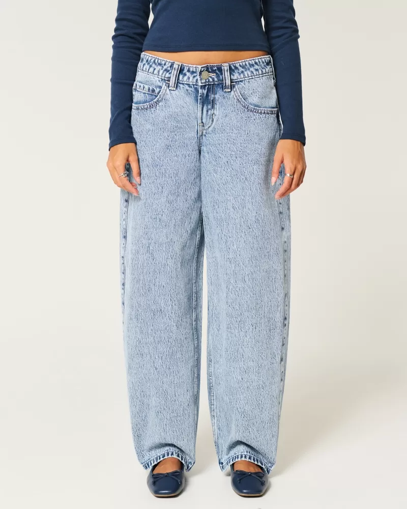 Low-Rise Light Wash Tapered Baggy Jeans
