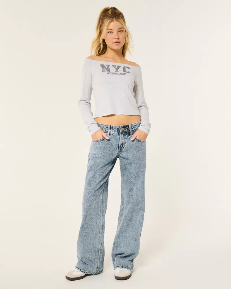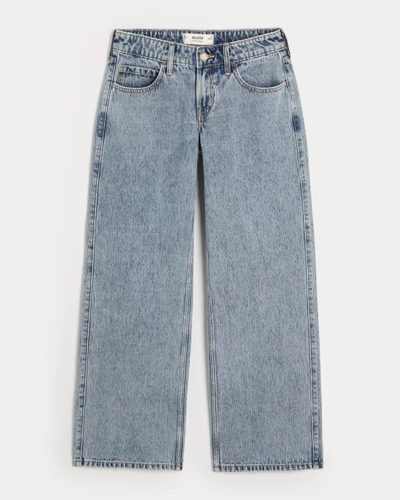 Your new favorite jeans are designed with a low-rise waist and comfortable baggy leg. Medium wash.