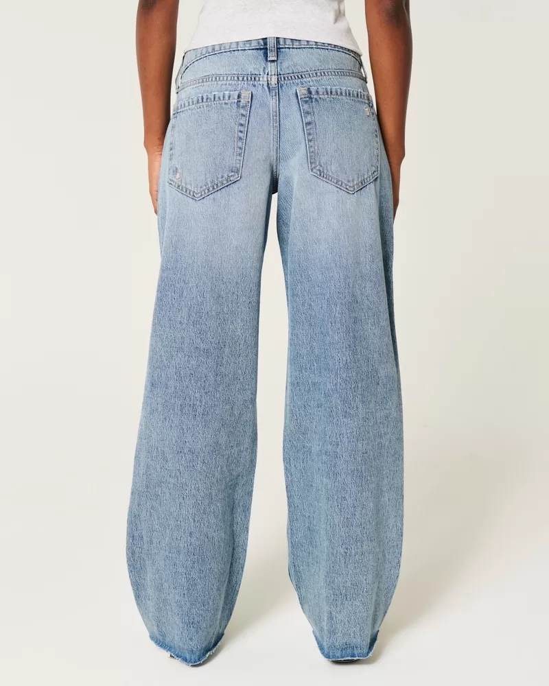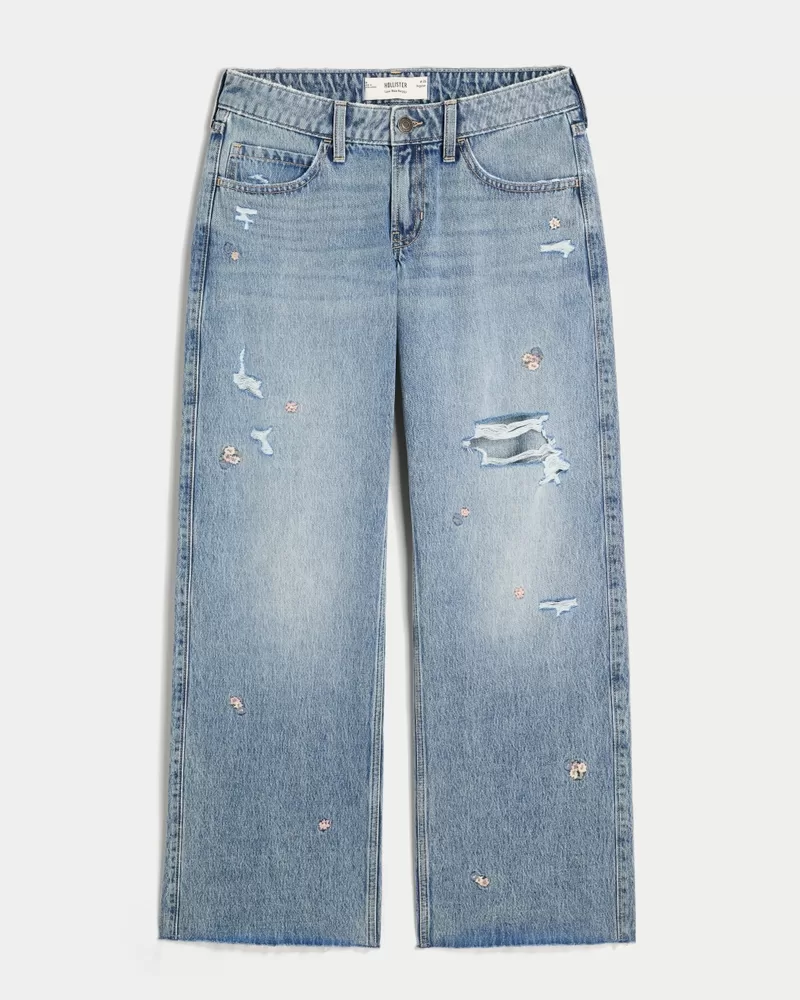 Low-Rise Medium Wash Floral Ripped Baggy Jeans,Low-Rise Medium Wash Floral Ripped Baggy Jeans