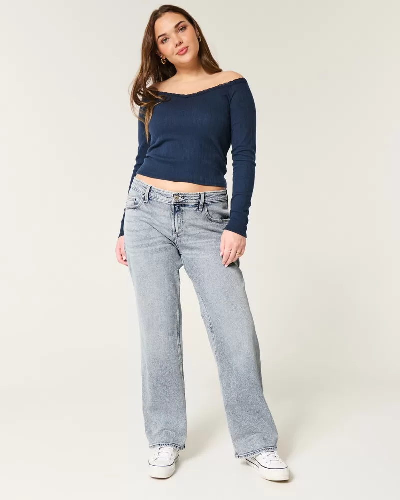 Low-Rise Medium Wash Relaxed Straight Jeans