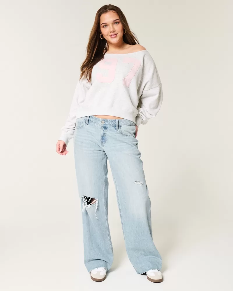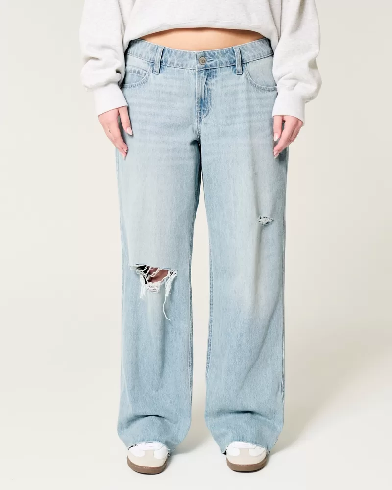 Low-Rise Ripped Light Wash Baggy Jeans