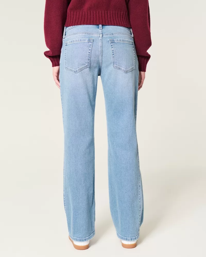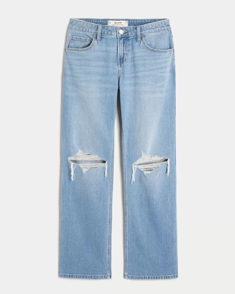 Low-Rise Ripped Medium Wash Relaxed Straight Jeans