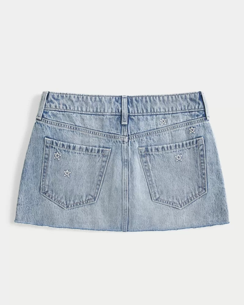 Low-Rise Star Embroidered Denim Mini Skort