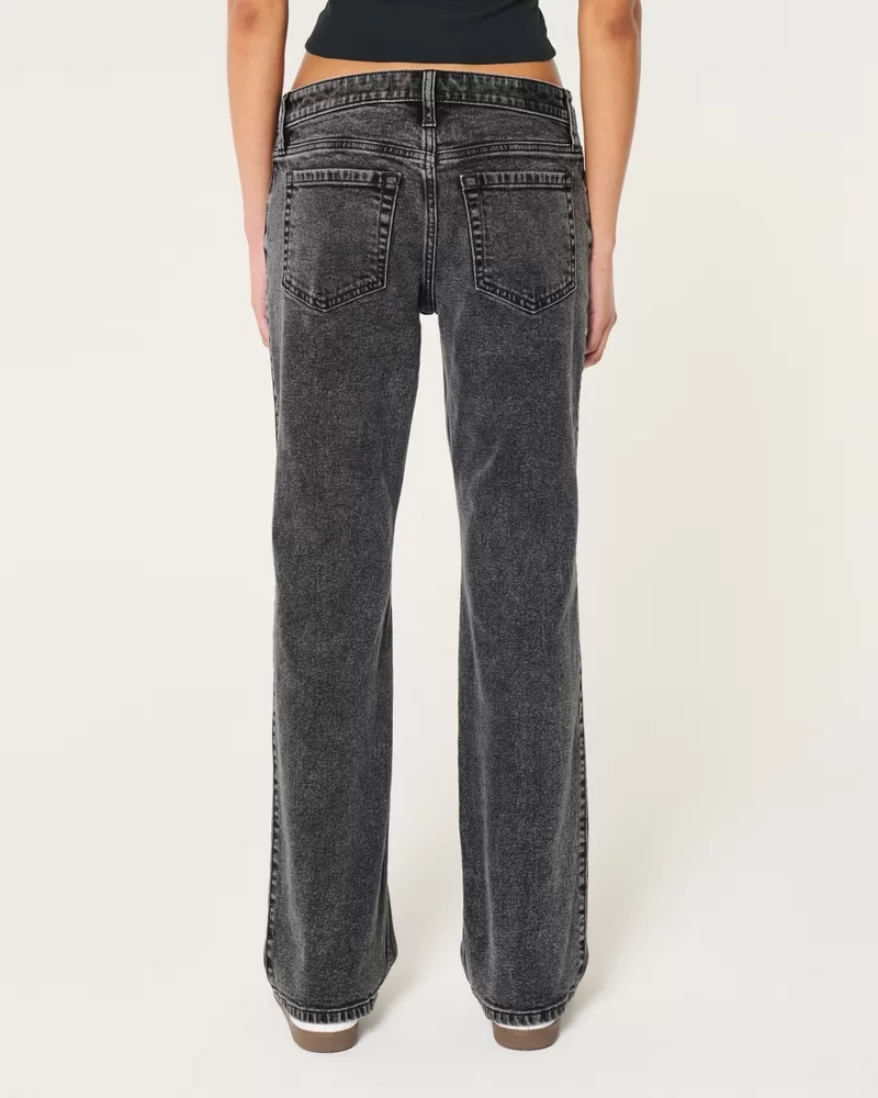 Low-Rise Washed Black Relaxed Straight Jeans
