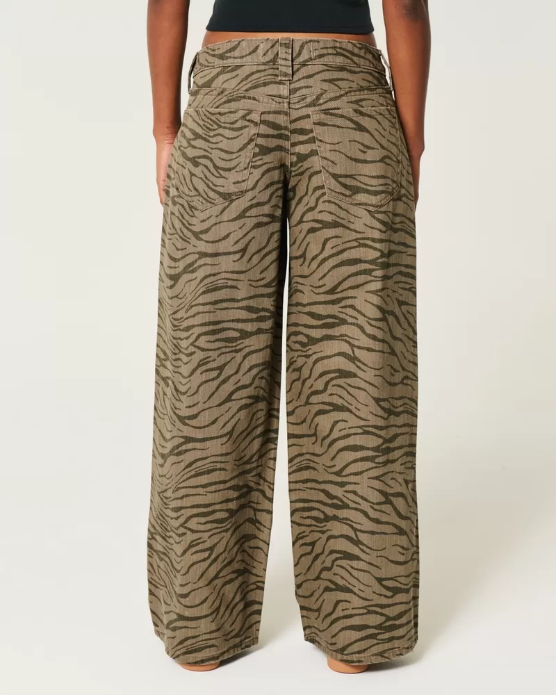 Low-Rise Zebra Pattern Super Baggy Jeans