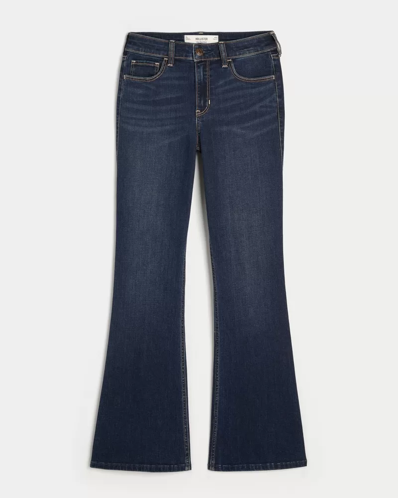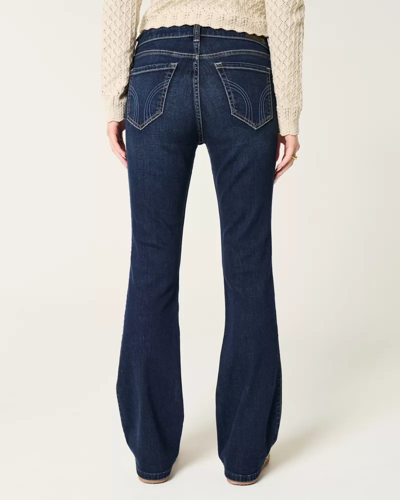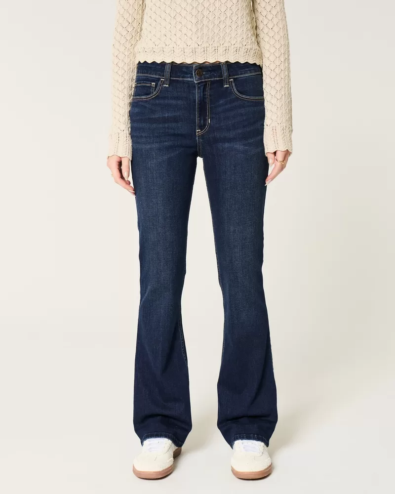 Cute and comfortable jeans in a dark wash, designed with a flattering mid-rise waist, slim leg and boot hem. Fading and whiskering, Soft Stretch denim.
